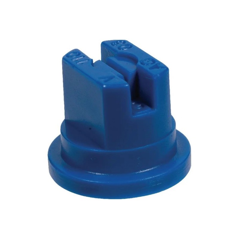 Ugello a ventaglio colore blu con angolo getto 03-110° e diametro foro 1,1mm. Getto a ventaglio largo per copertura ampia superfici.