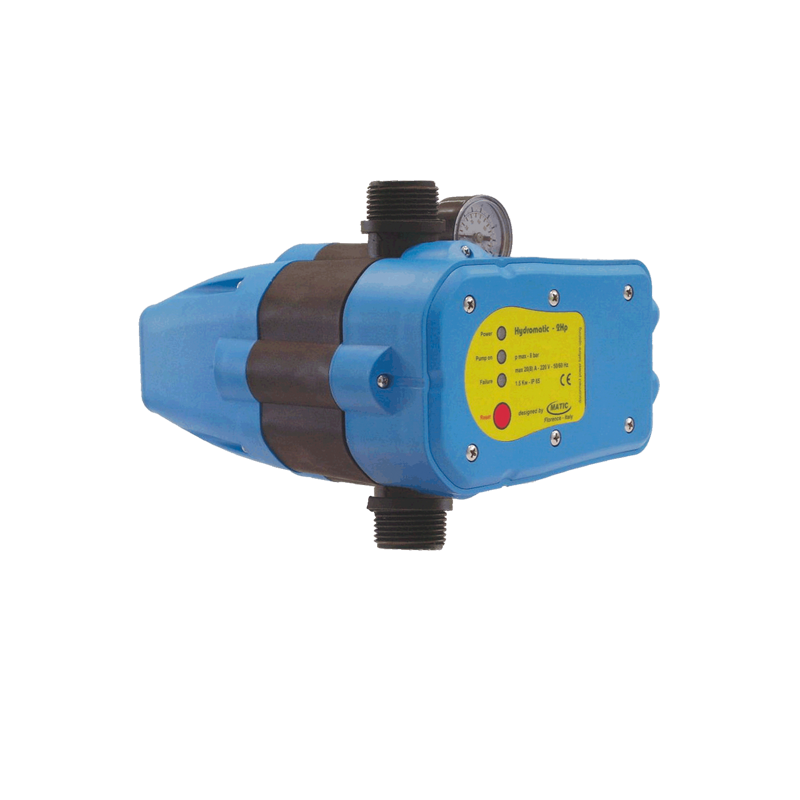 Pressoflussostato elettronico Nuovo Hydromatic di Pedrollo per pompe fino a 2 HP. Avviamento e arresto automatico della pompa con protezione integrata contro la marcia a secco.