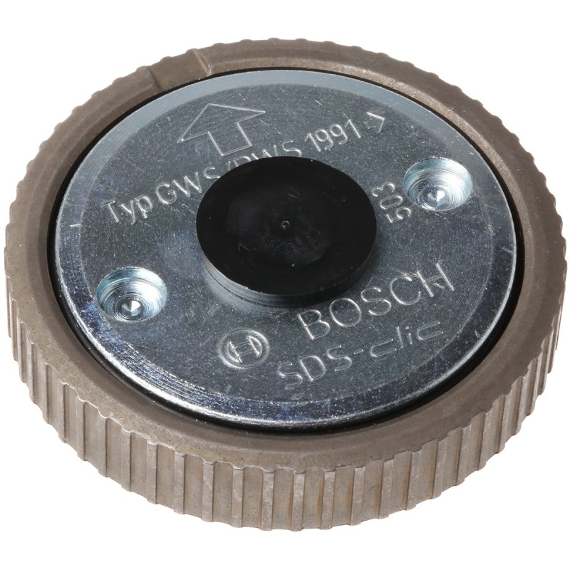 Dado di serraggio rapido Bosch 1603340031 in metallo resistente con sistema SDS‑clic e filettatura M14, accessorio originale per smerigliatrici angolari Bosch con attacco M14; consente il fissaggio e lo sgancio veloce dei dischi abrasivi, da taglio e diamantati senza l’uso di chiavi, garantendo bloccaggio sicuro delle ruote con diametro tra 115 e 230 mm e riducendo i tempi di cambio utensile nel lavoro continuo.