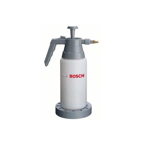 Bombola d’acqua Bosch per uso con punte diamantate e seghe per foratura a umido, realizzata per fornire raffreddamento costante alla punta di perforazione tramite erogazione controllata d’acqua durante l’uso; la costruzione include serbatoio con sistema di pressione e tubo flessibile di collegamento che consente di dirigere il flusso d’acqua sulla zona di taglio per ridurre l’attrito, minimizzare il surriscaldamento e prolungare la durata dell’utensile, permettendo prestazioni ottimali in applicazioni di foratura professionale su materiali duri.