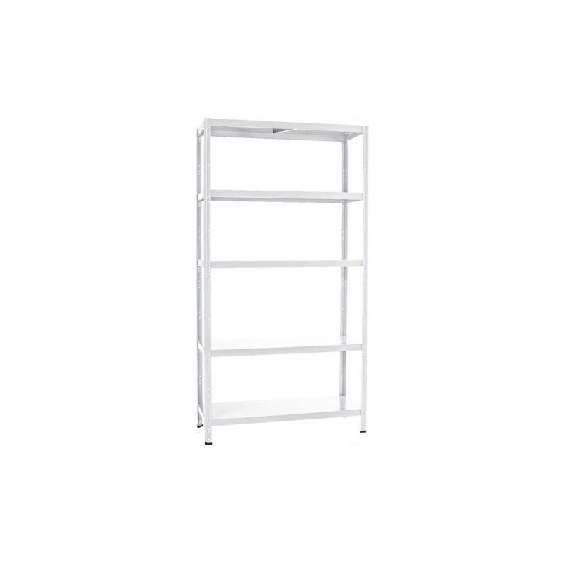 Scaffale in metallo verniciato bianco con 5 ripiani, dimensioni 40x100x185 cm. Scaffalatura leggera ma resistente per l'organizzazione di materiali in garage, magazzino, cantina e ripostiglio.
