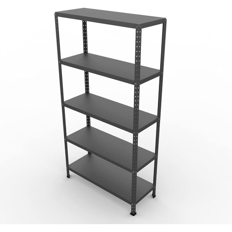 Scaffale in metallo verniciato marrone con 5 ripiani, dimensioni 40x100x185 cm.