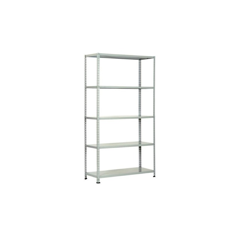 Scaffale in metallo zincato con 5 ripiani, dimensioni 400x1000x1850 mm. La finitura zincata offre resistenza alla corrosione e alla ruggine, ideale per ambienti umidi come cantine, garage e magazzini non riscaldati.