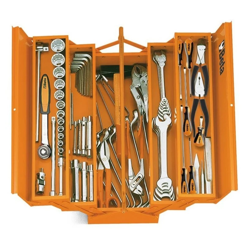 Soluzione di stoccaggio e trasporto professionale Beta per l'organizzazione dell'officina. Struttura robusta in lamiera d'acciaio verniciata a polvere o in tessuto tecnico rinforzato, progettata per resistere all'uso intensivo quotidiano. Cassetti scorrevoli su guide a sfera con chiusura di sicurezza, vani portautensili organizzati e ruote piroettanti con freno per mobilità e stabilità.