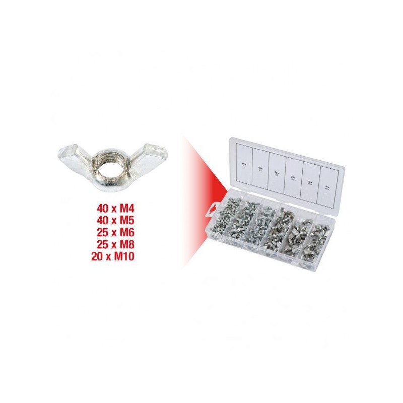 Valigetta con 150 dadi a farfalla (ad alette) da M4 a M10.