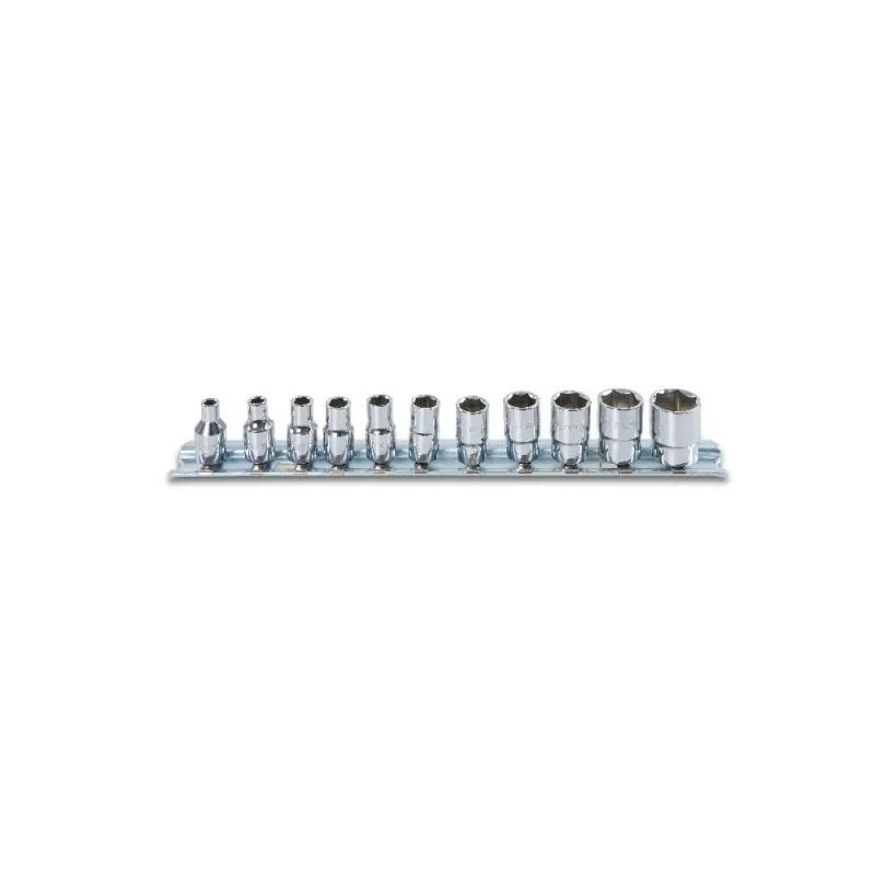 Serie assortita di chiavi professionali Beta, fornita in supporto compatto o astuccio per trasporto e organizzazione. Ogni chiave è realizzata in acciaio al cromo-vanadio forgiato e temperato con finitura cromata per resistenza alla corrosione. La serie include le misure più comuni per coprire le principali esigenze di serraggio in officina.