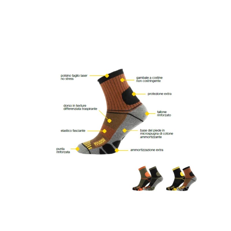 l’evaporazione dell’umidità. Fibra naturale a contatto con la pelle nell’area del plantare. Colori vivaci e sportivi caratterizzano questa calza