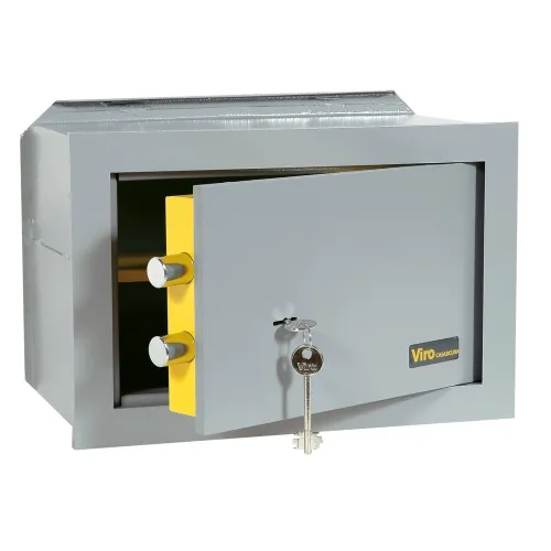 Casseforti a muro marca Viro, gamma completa da 200x310x200 a 550x420x250 mm. Struttura in acciaio con serratura di sicurezza per incasso a parete o installazione a mobile.