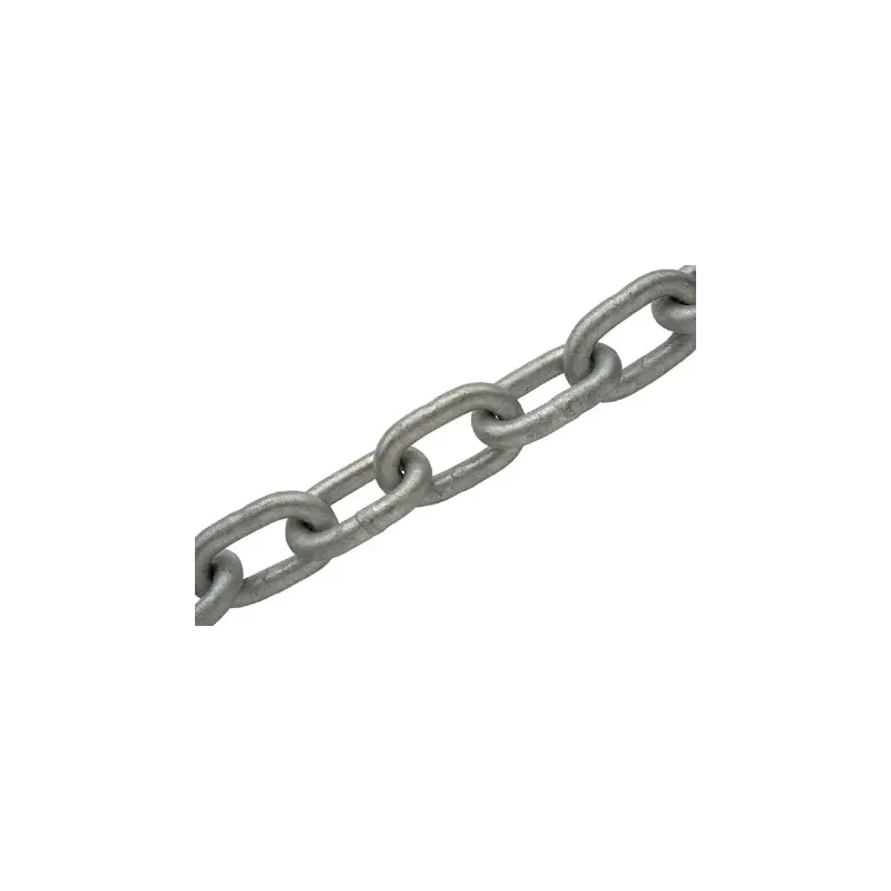 Catena zincata (zincocromata o zincata a caldo) per legature, ancoraggi e usi generali. La zincatura garantisce protezione dalla corrosione per utilizzo in ambienti esterni.