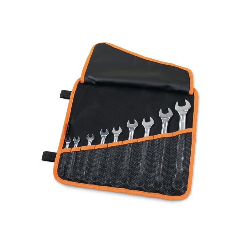 Serie assortita di chiavi professionali Beta, fornita in supporto compatto o astuccio per trasporto e organizzazione. Ogni chiave è realizzata in acciaio al cromo-vanadio forgiato e temperato con finitura cromata per resistenza alla corrosione. La serie include le misure più comuni per coprire le principali esigenze di serraggio in officina.
