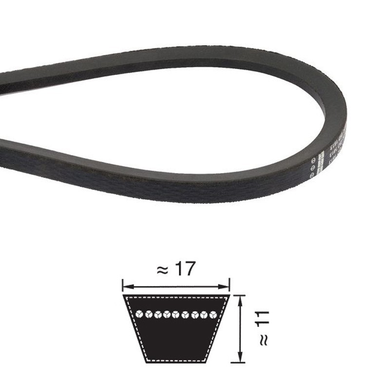 Profilo e dimensioni: sezione B con top width ~17 mm e altezza ~11 mm (V‑angle standard).