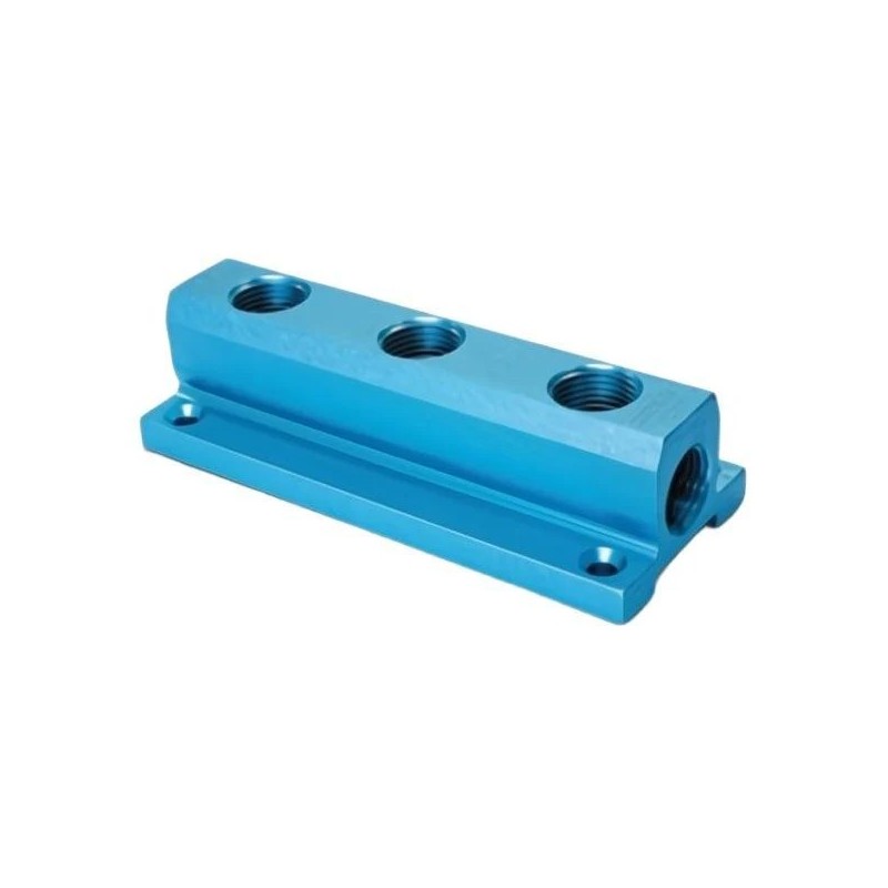Il distributore anodizzato 320/3A 5 fori è un componente pneumatico realizzato in alluminio anodizzato resistente alla pressione e alla corrosione, progettato per distribuire aria compressa da un ingresso a cinque uscite, compatibile con tubi e raccordi pneumatici standard da 1/2”, adatto a officine, impianti industriali e linee produttive, garantendo affidabilità, lunga durata e resistenza ai cicli operativi tipici degli impianti ad aria compressa.