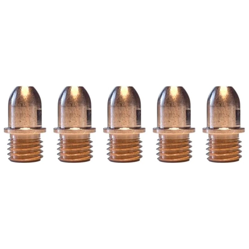 Kit 5 elettrodi prolungati — confezione di 5 elettrodi per taglio plasma di lunghezza maggiorata, consumabili progettati per garantire maggiore durata, stabilità dell’arco e precisione nei tagli, specialmente su materiali di spessore variabile.