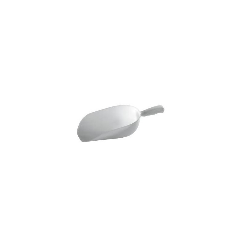 Sassole (palette) in polietilene ad alta densita bianche, lunghezze 24, 30 e 36 cm, capacita da 250 a 1100 cc. Per dosaggio e prelievo materiali sfusi, alimentari e chimici.
