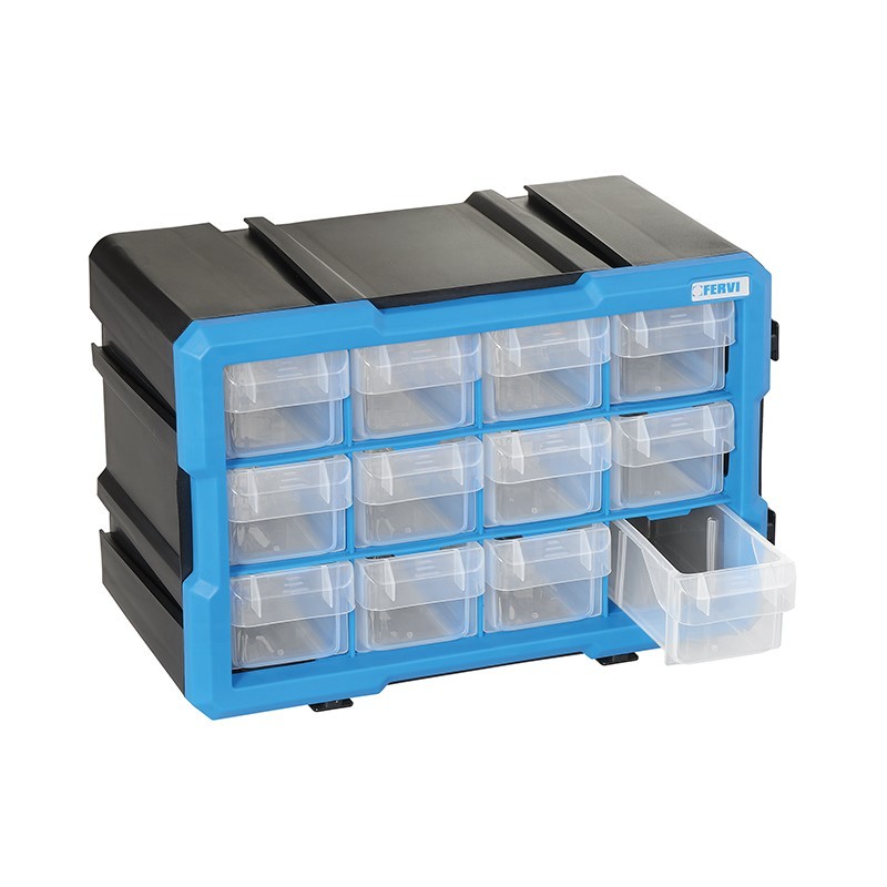 Cassettiera con cassetti estraibili marca Fervi articolo C086/12C, 12 cassetti. Massima capacita organizzativa per minuterie, componenti e piccoli ricambi.