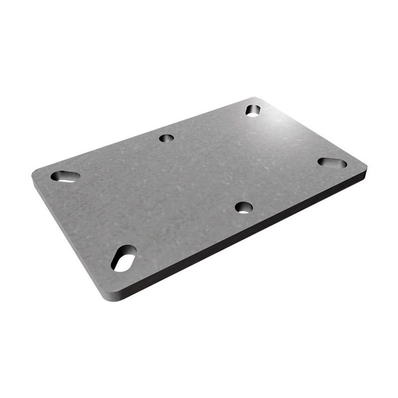 Contropiastra inox per ruote, 2 misure: 100x85mm e 140x110mm. Per fissaggio in ambienti umidi, alimentari o chimici.