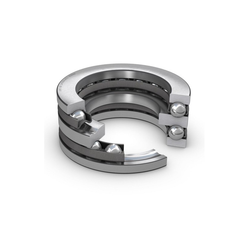 Varianti multiple (51100, 51101, 51102, 51103, ecc.). Cuscinetti reggispinta a sfere a singolo effetto, elevata precisione (classe P5/P6), scomponibili, per carichi assiali elevati. Le foto sono puramente illustrative.