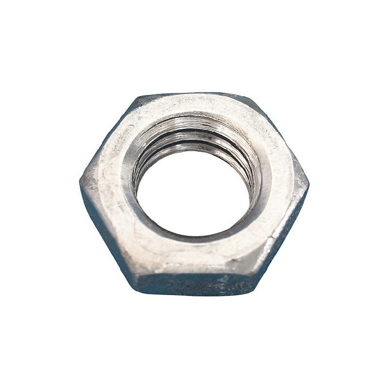 Dadi bassi esagonali zincati conformi a UNI 5589 (DIN 439 / ISO 4035), con altezza ridotta rispetto ai dadi medi standard. Utilizzati dove lo spazio verticale è limitato o come controdadi per impedire lo svitamento del dado principale.