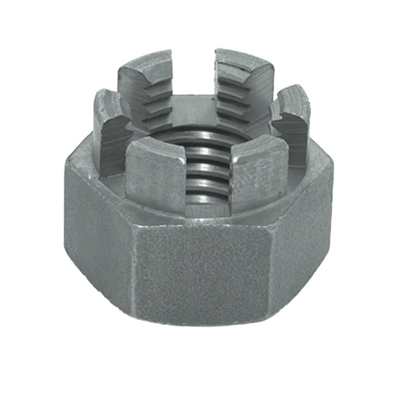 Dadi coronati (castellati) esagonali per l'uso con copiglie, garantiscono un bloccaggio meccanico sicuro su assi e perni.