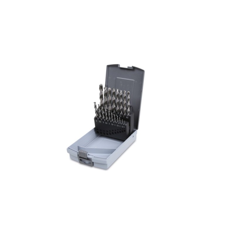 Serie assortita di maschi, estrattori o punte Beta in acciaio rapido HSS o cromo-vanadio. Strumenti di precisione per operazioni di filettatura, estrazione e foratura in officina meccanica.