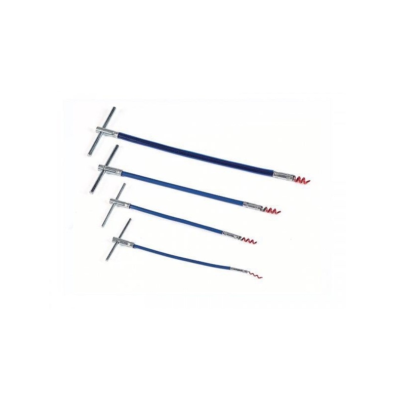 Set di 4 estrattori flessibili per rimozione baderne (trecce) da premistoppa di valvole e pompe.