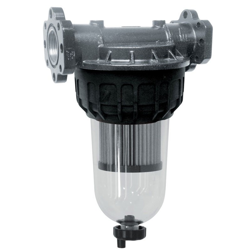 Filtro a cartuccia per gasolio con contenitore trasparente per controllo visivo dello stato del filtro marca Piusi.