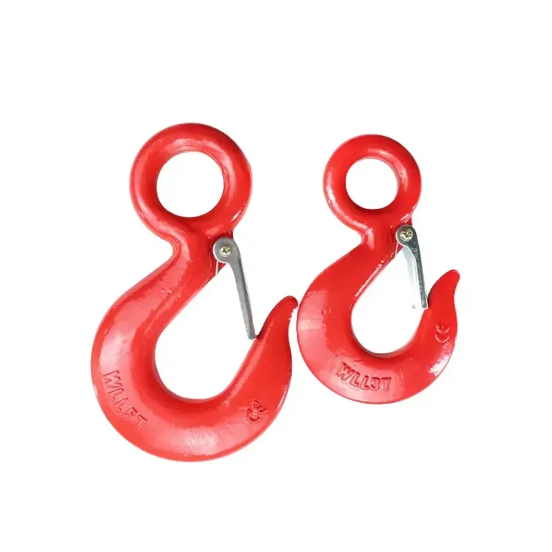 Gancio ad occhio per il collegamento a catene e tiranti di sollevamento. In acciaio forgiato con linguetta di sicurezza, portata certificata secondo normative EN.