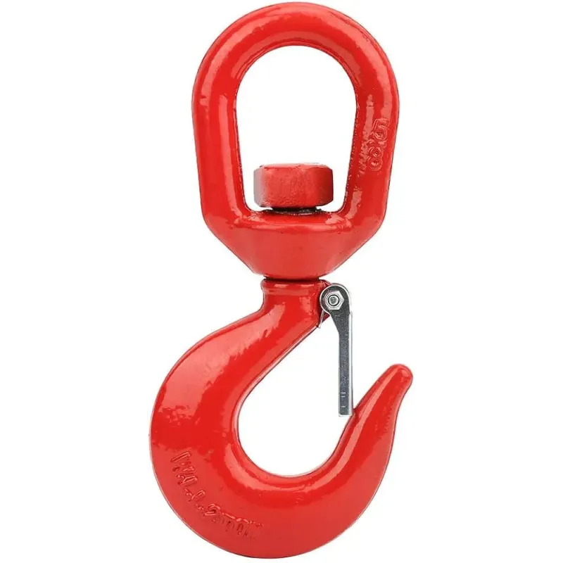 Gancio girevole per catene e tiranti di sollevamento, ruota a 360° per evitare torsioni durante il sollevamento. In acciaio forgiato con linguetta di sicurezza e portata certificata.