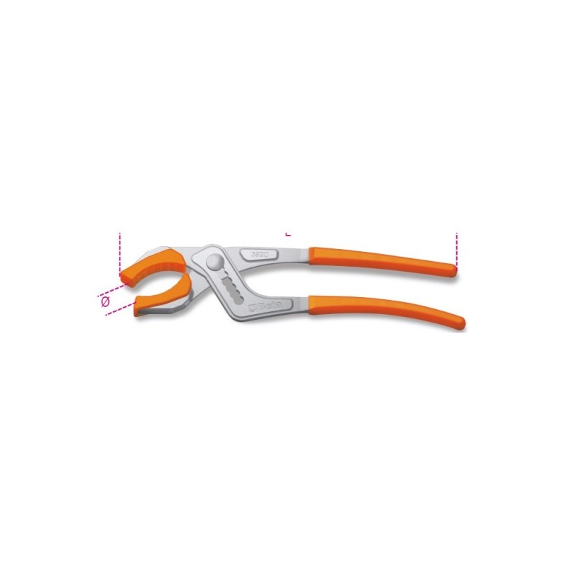 Pinza specialistica Beta art. 392C per idraulica: presa e regolazione di rubinetti, sifoni, raccordi e pilette negli impianti sanitari.