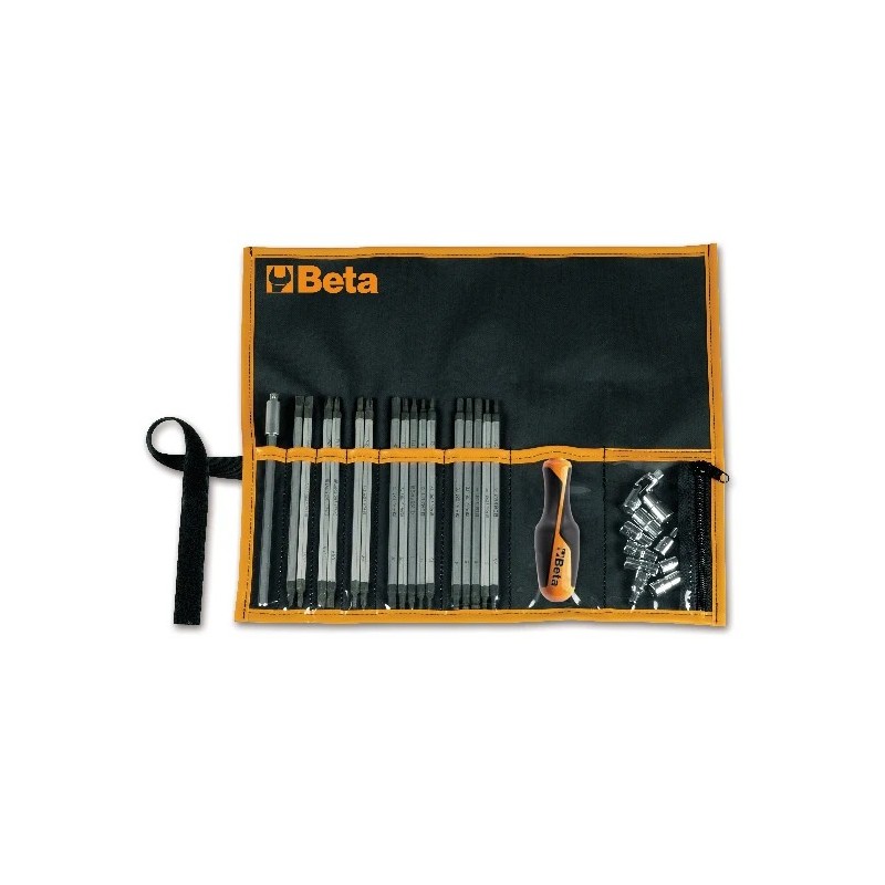 Serie assortita di giraviti (cacciaviti) professionali Beta, fornita in pratico supporto per organizzazione in officina. Ogni giravite è realizzato con lama in acciaio al cromo-molibdeno-vanadio brunita e impugnatura ergonomica bimateriale antiscivolo. La serie comprende le misure e i profili più utilizzati per coprire la maggior parte delle esigenze di avvitatura.