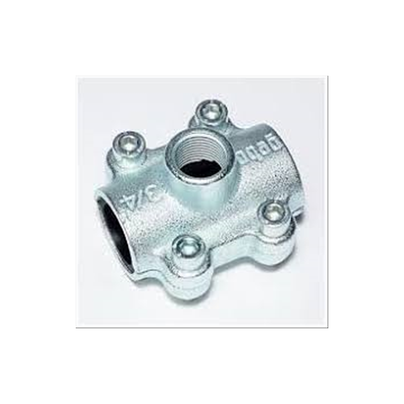 Staffa di derivazione (saddle clamp) in acciaio zincato per realizzare prese di derivazione su tubazioni esistenti senza saldatura. Guarnizione di tenuta interna. 7 misure per tubi da 1" a 2-1/2" con uscita filettata 3/4" o 1".