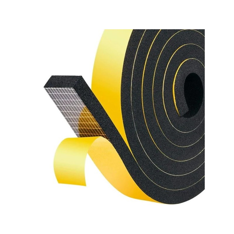 Profilo in gomma spugna con lato adesivo per applicazione diretta. 7 misure con sezioni da 10x3 a 40x10 mm.