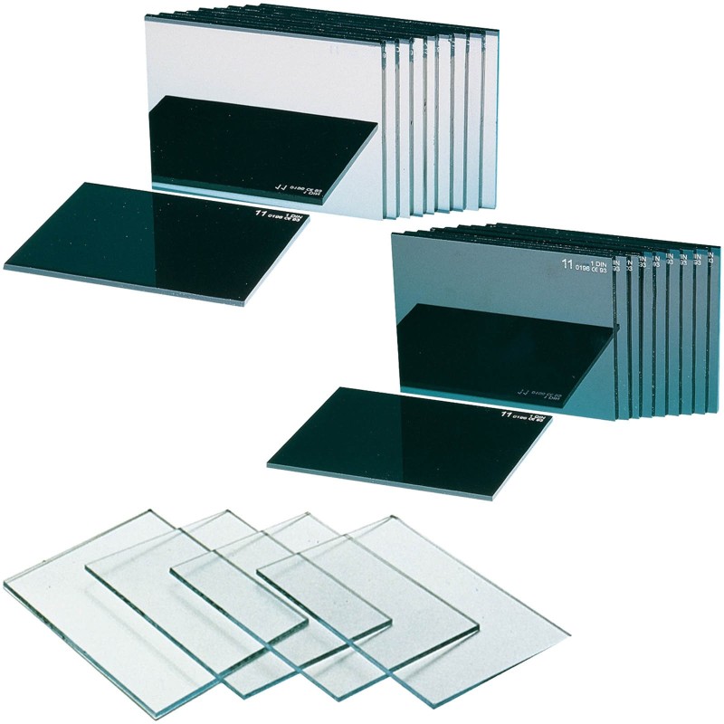 Vetro per maschera da saldatura, disponibile in diverse gradazioni DIN e dimensioni, ideale per garantire una protezione ottimale degli occhi dai raggi UV, infrarossi e scintille.