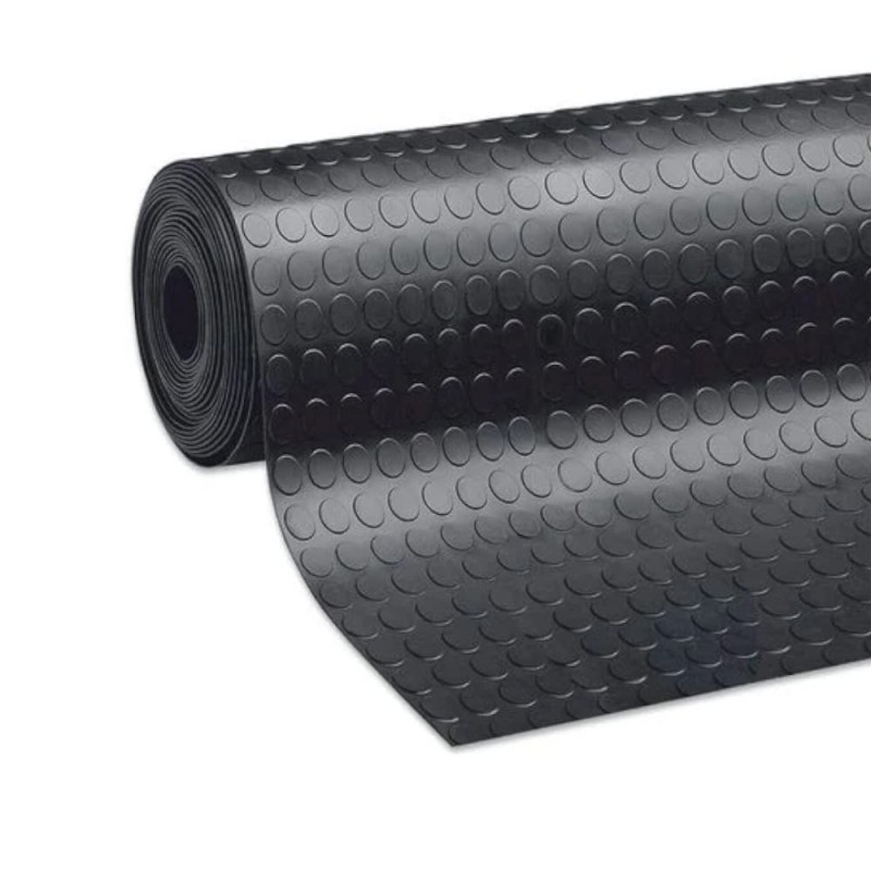 Pavimento in gomma vulcanizzata con caratteristica superficie a bolli che garantisce elevate proprietà antiscivolo. Soluzione classica per ambienti ad alto transito.
