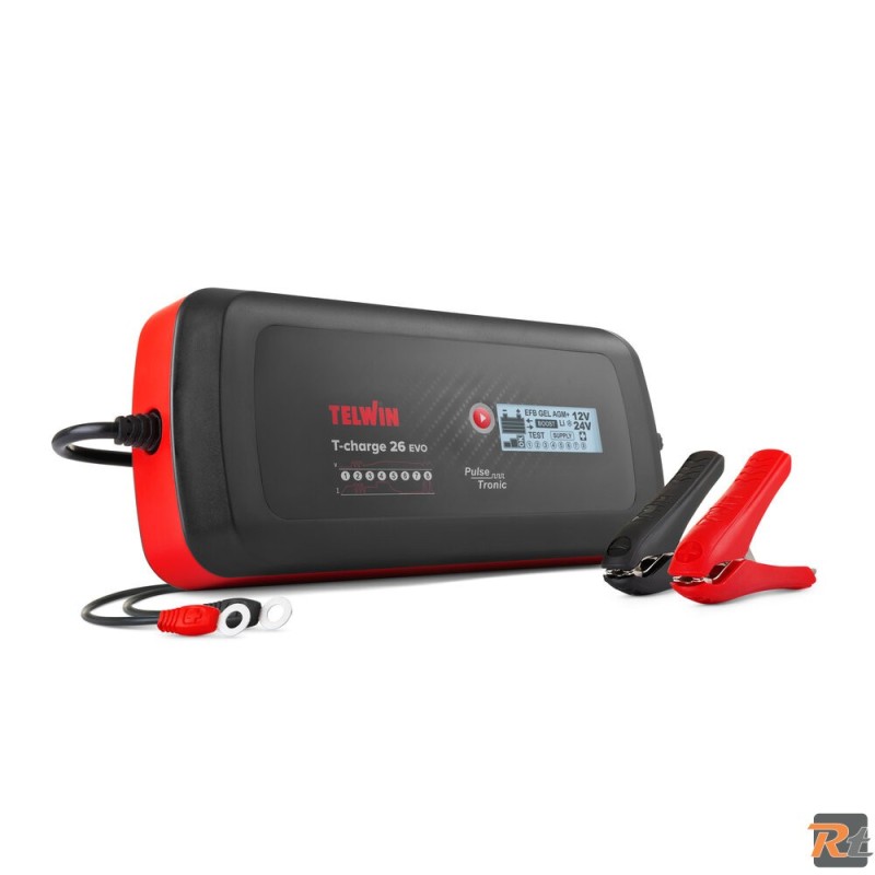 Caricabatterie, mantenitore e tester elettronico multifunzione con schermo LCD per batterie 12/24V.