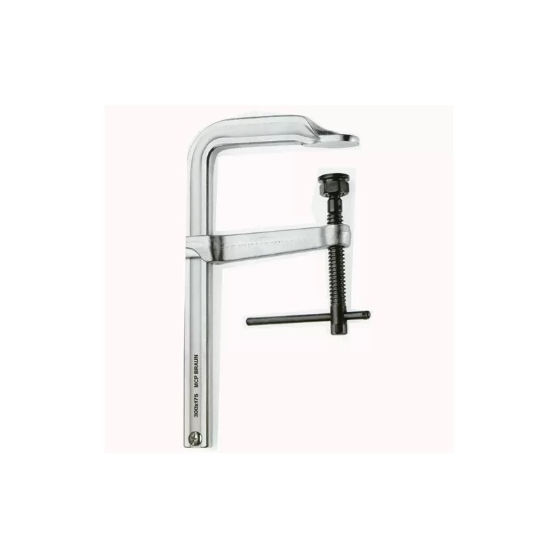 Strettoi professionali a vite con asta in acciaio nervato e ganascia scorrevole, per lavori di falegnameria e incollaggio.