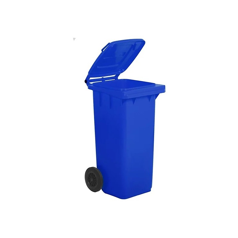 Contenitore per raccolta differenziata carta e cartone, capacità 120 litri, colore blu.