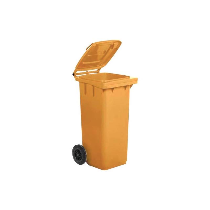 Contenitore per raccolta differenziata plastica e metalli, capacità 120 litri, colore giallo.