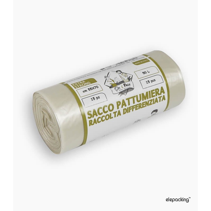Sacchi per rifiuti color ambra/giallo per facile identificazione.