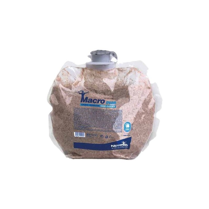 Ricarica per dispenser a parete, crema lavamani con microgranuli vegetali.