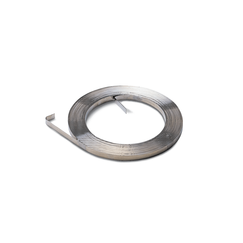 Reggetta in acciaio inox AISI 201 tipo Band-It marca Barbero in quattro larghezze (3/8", 1/2", 5/8", 3/4"), rotoli da 30 mt. Per reggiatura industriale pesante e ambienti corrosivi.