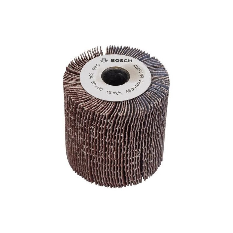 rullo abrasivo lamellare 60 mm grana 80 cod. 1600A0014V (EAN 3165140730051) per levigatura con levigatrici Bosch e accessori di levigatura compatibili.