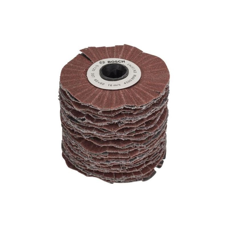 rullo abrasivo flessibile 60 mm grana 120 cod. 1600A00153 (EAN 3165140730136) per levigatura su superfici curve e contornate con levigatrice Bosch.