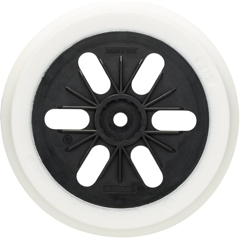 Platorello di supporto Bosch 2608601115 morbido Ø 150 mm con sistema di aggancio per dischi abrasivi a strappo per levigatrici eccentriche/rotoorbitali Bosch serie GEX 125‑150 AVE, GEX 150 AC e GEX 150 Turbo, progettato per levigatura delicata di superfici come vernice, stucco e legno.