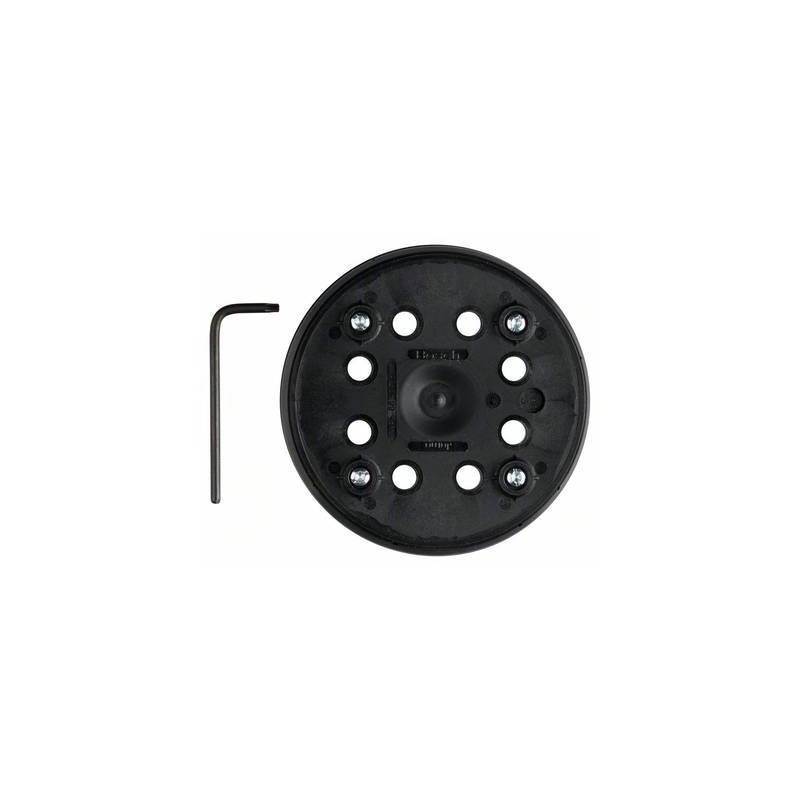 Platorello di supporto originale Bosch 2608601169 Ø 125 mm di durezza medio con 8 fori per aspirazione, completo di viti e chiavi di montaggio, per levigatrici eccentriche Bosch PEX 270 A/AE.