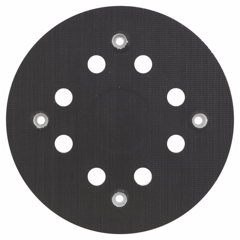 Platorello di ricambio Bosch 2608601173 con diametro di 125 mm e durezza medio‑duro, dotato di 8 fori per estrazione della polvere e progettato per garantire contatto uniforme e trasferimento efficace della pressione durante le operazioni di levigatura con levigatrici eccentriche Bosch GEX 270 A e GEX 270 AE Professional; il design equilibrato e il materiale di supporto assicurano stabilità e durata, consentendo l’uso con una varietà di fogli abrasivi compatibili per la preparazione e finitura di legno, vernice e materiali compositi su superfici piane e leggermente contornate.