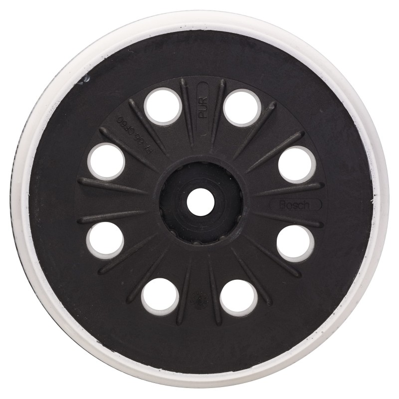 Platorello Boschper levigatrice eccentrica con superficie di appoggio per supportare fogli abrasivi e consentire operazioni di levigatura su superfici di vernice, stucco e materiali vari con trasferimento uniforme della pressione e compatibilità con utensili Bosch ecc.