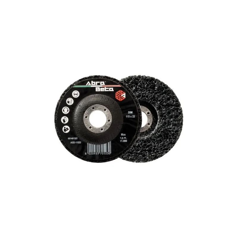 Disco stripping Abra Beta per la rimozione rapida ed efficace di vernici, ossidi, ruggine e residui da superfici metalliche. La versione nera è studiata per un'azione aggressiva su vernici tenaci e strati di ossido pesanti.