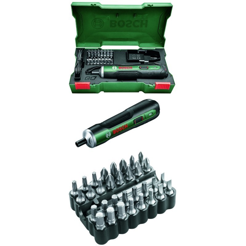 accessori inclusi: caricatore micro‑USB, set bit (tipicamente 32 pezzi), valigetta/astuccio