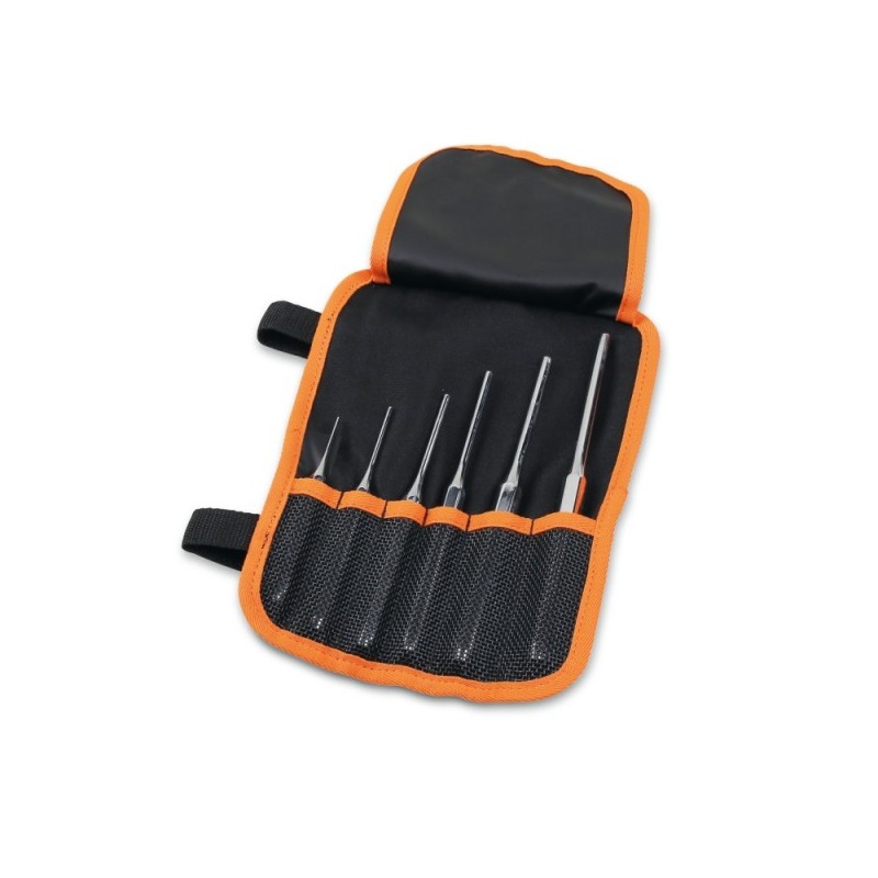 Serie assortita di scalpelli, punzoni o cacciaspine Beta in acciaio al cromo-vanadio forgiato e temprato per tracciatura, battitura e rimozione in officina. Modello: SERIE CACCIASPINE 31/B6N.